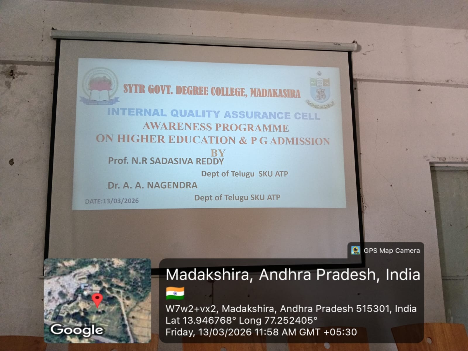 Madakasira village was under dynasty of Sri Krishna Devaraya. It is a historical place and also adjacent to Penugonda, which is kingdom of Sri Krishna Devaraya. It is not only historical place but also mythological tales to the temples surrounded to this village. It is near to famous Lepakshi Temple, Pavagada, NagulaMadaka, Hemavathi Temple and the holy place of Ratnagiri. The Simhamoothikonda is an ornament to this college. Apart from this, there is a Mitta Banda Anjaneya Swamy Temple beside the College. The Devotees of the Village people constructed a very big Sai Baba Temple in this area. For the welfare of the people, King Sri Krishna Devaraya constructed lake at nearby Hare Samudram village. Madakasira village is called 2nd Ooty over It ‘s very cool and beautiful atmosphere .The village population is approximately 32000.Recently, the village upgraded as Municipality.There are number of Educational Institutions established in this area.When we consider the educational saga that began with the birth of Sri Shantamma Y. Thimma Reddy Government UG & PG College situated at Madakasira Village, AnanthapurDistrcit. It is established during the year 1991.